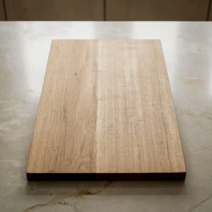 Die Stärke von ca. 2 cm ist dabei echt ein Unterschied. Dünnere Bretter kennt man ja: Sie biegen sich schnell, rutschen, wirken irgendwie „billig“. Dieses Brett nicht. Es liegt stabil auf dem Tisch, man kann locker darauf schneiden oder das Lieblingsbrot aufschneiden, ohne dass man Angst haben muss, dass es sich verbiegt. Gerade das macht es so besonders: Es ist praktisch und gleichzeitig schön, ein echtes Brett, das Freude macht – egal ob man allein isst oder Gäste bewirten möchte.